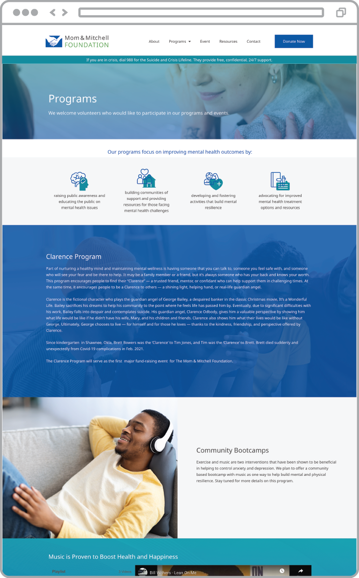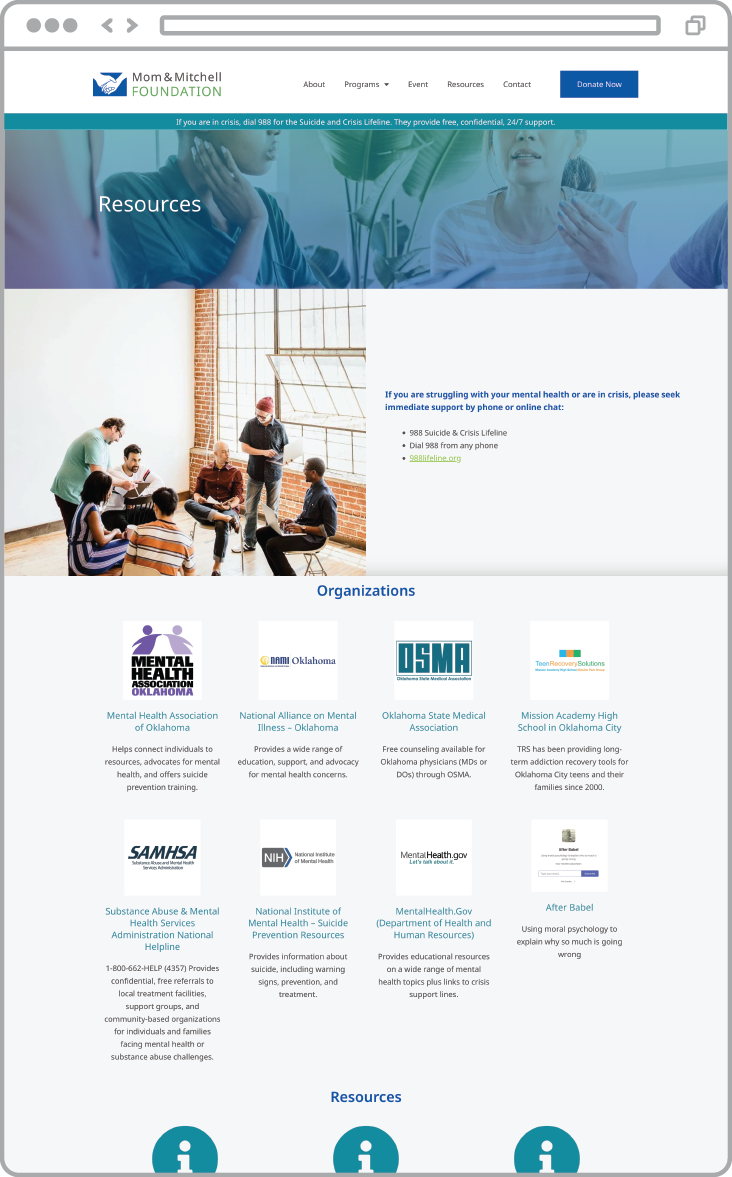 The Mom & Mitchell Foundation is a non-profit organization dedicated to fostering mental wellness and improving outcomes in the treatment of mental health disorders and disease. The foundation was created by Tim Jones in honor of his mother and son, both of whom died by suicide. The goal of this project was to develop a brand and website that conveyed the foundation’s mission while honoring the personal stories behind its creation.